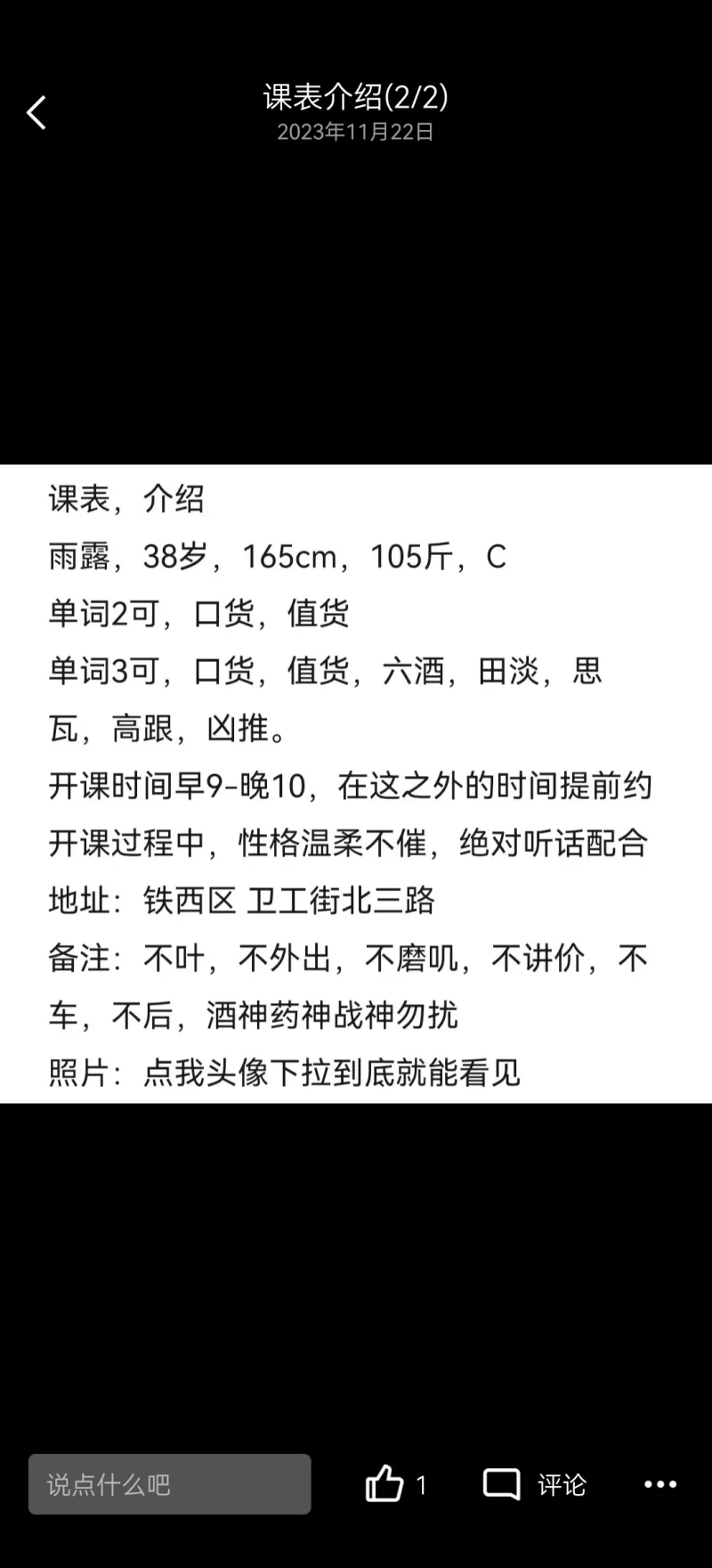 信息分类:楼凤兼职 地区:辽宁省-沈阳 信息来源:网站 年龄:40 颜值身材:6 服务项目:kh td sw aa 69 价格:200 不包夜 环境设备:6 详细地址:本段信息已隐藏,请先登陆。点击登陆 , 或者 点击注册 联系方式(QQ号):本段信息已隐藏,请先登陆。点击登陆 , 或者 点击注册 详细介绍: 出差沈阳 就想找一个 在网站上看的这个便宜熊又大 立刻加了联系方式 打车前往 遥控上楼 一袭黑丝我立刻就来了感觉 简单洗洗就开搞 ➕100能五套 但是我不敢 10分钟缴枪交钱 走人 楼凤兼职