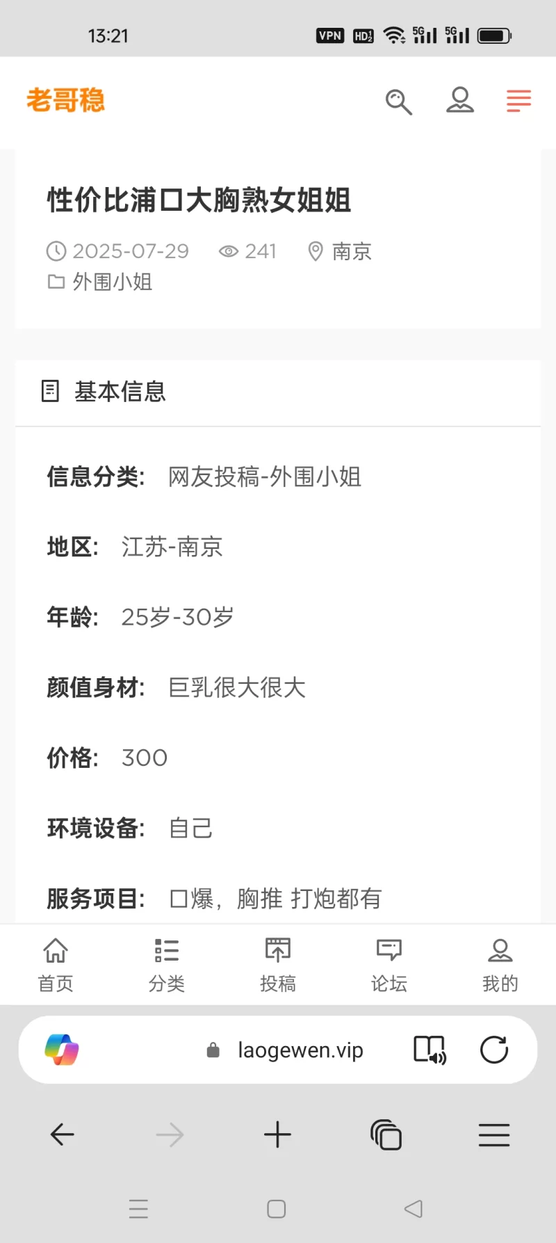 水管路上金帝足浴有口欢迎加入志同道合·,群号码:239393742迎加入志同道合·,群号码:239393742、全套,价格150~200元;天古木桶浴全套都有,价格200~400元;其他几家都有全套,价格200左右;小姐质量要看运气,多逛几家,始终有好的。 大庆路上西子足疗是个50岁左右的老女人,没性趣做;蓝月亮没有这家店,法院边上的是30多岁的妇女,没性趣做;其他几家最多是FJ了,价格30~50元。 东方花园几家都是FJ什么的,年纪还大,都是30多岁的妇女,没性趣玩。 大家有性趣的可以都去转转,顶起来啊,下次我再去其他几个地方验证一下。 连云港有性趣交流的加群:239393742 志同道合