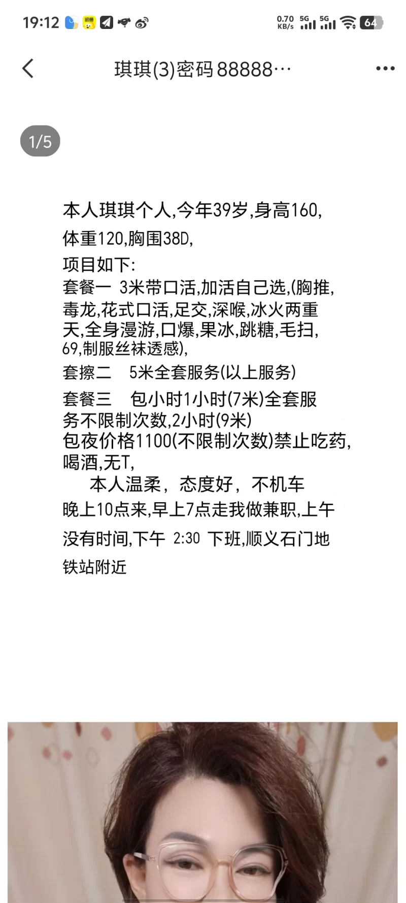 顺义小阿姨 该文章被用户投诉为:联系方式失效,增加联系方式并审核通过后可自动删除投诉标记 [增加联系方式] 疑似失效 联系方式已被举报失效/虚假,请谨慎购买 2025-09-27 0 其他区县 外围小姐