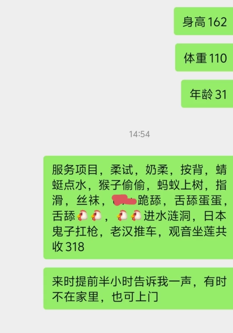 闲来无事,晚上本狼闲逛,快至路口时发现有几个发廊,从外面看好后进入,小姐问是否按摩,答曰按,什么价格,小姐说50,跟随上楼,按了几下,小姐问是否要刺激点的活动,问明项目后同意。小姐先冰火口交,按捺不住时本狼提枪上阵,半个多小时解决战斗。爽,小姐服务也好,有经验。