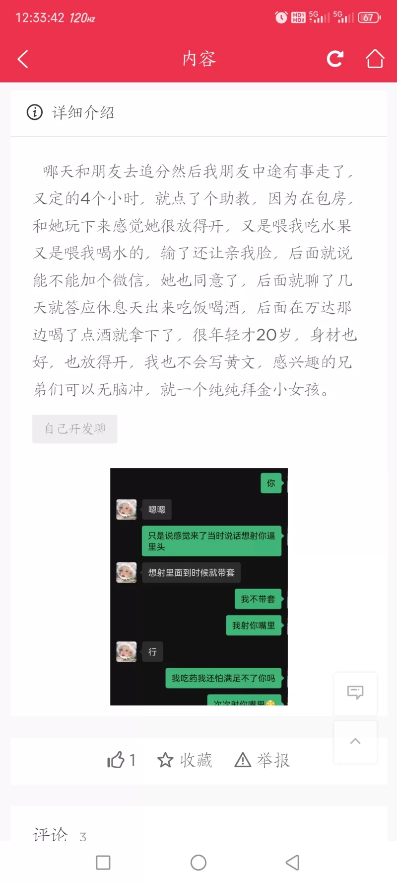 一般晚上在线的时间多,白天好像要上班。然后就聊了起来。结果才知道她是做服务的丝袜女,聊了几天 忽悠妹子发来了私房照,这才放心出动了。(加上别说看到过私房照 毕竟会让她感觉不安全) 看见私房照比较冲动 就谈好了要2次怕玩不够,第一次她也非常主动 上面说的服务都来了一遍 我比喜欢口 整个过程就口和爱爱时间长一点 口的时候就一直控制住 不然早交货了 一会趴着口 站着口 各种姿势 很爽。一次做完 抽根烟 妹妹又主动添 加淫语挑逗 整个过程换了两双不同的丝袜,虽然硬了 但是好像没之前那种冲动了 身体虚了点 妹妹就打开手机 放片子 给我看 第二次没做 就口了出来 彻底放松 一个礼拜不用想这些事情了 有时候约都是没过瘾 甚至第二天还想找个妹子约一次 这次是彻底过瘾了 实在体力不行 年纪原因 不然就包夜了 玩一次顶十次哈哈 物有所值